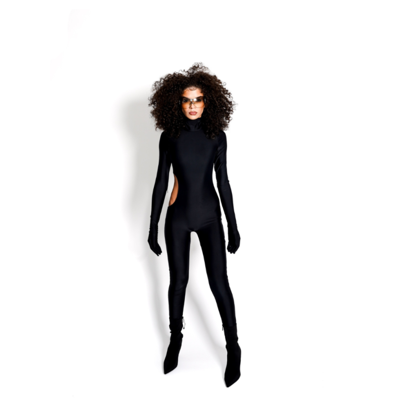 Electra is a full glove bodysuit with a beautiful cut out on the right side of the hip, with a zip closure at back. This bodysuit is tall girl friendly.